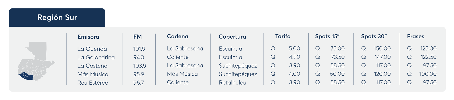 Contamos con estaciones de radio en cada departamento de Guatemala.